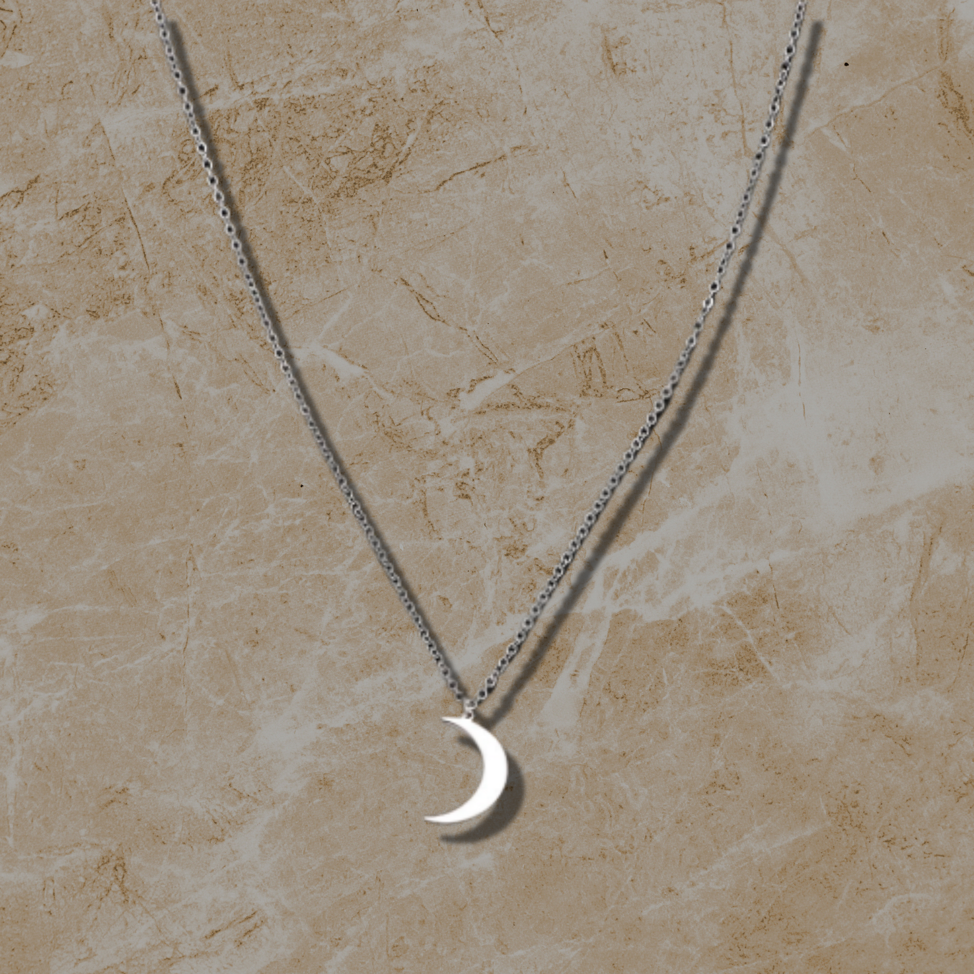 Offered in two radiant tones, gold and silver, the piece is designed to elevate both everyday essentials and evening ensembles. The clean lines and symbolic crescent shape make this necklace a subtle yet powerful expression of inner strength, grace, and intention.